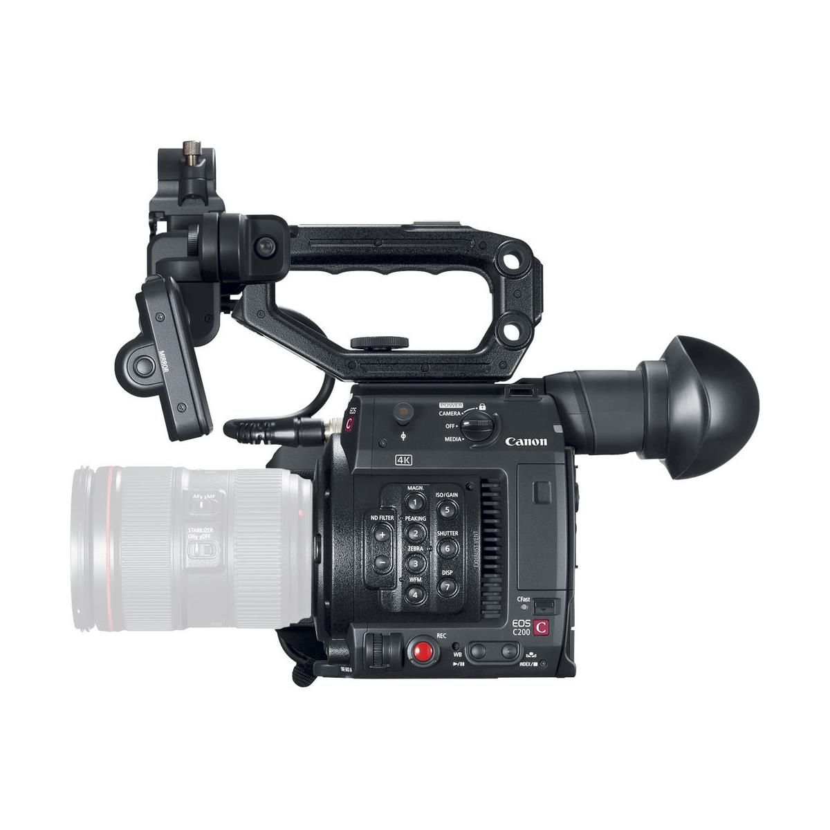The handle features its own screw to enable fast and easy tool-less attachment to the EOS C200 body. It also offers the option to mount various accessories to accommodate different photographic and filming applications.