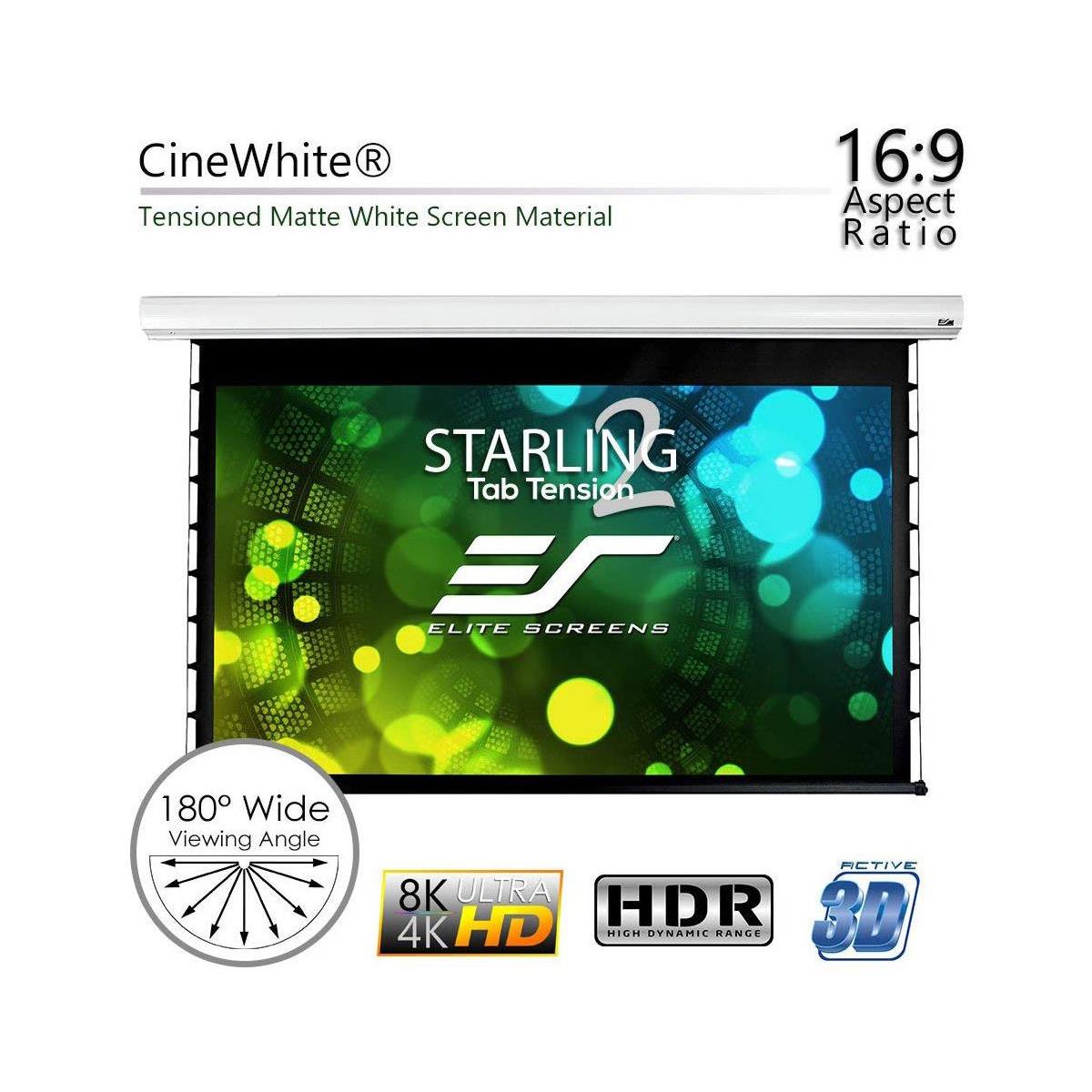 CineWhite (Tension Matte White) has broad light dispersion through diffusion uniformity, black & white contrast and true color rendition making it the most versatile in Elite Screens’ tension screen product lines. This tension PVC surface is the best choice for today’s high-contrast ratio projectors in commercial or residential presentations. The CineWhite material equals the performance to our MaxWhite product, but improves the experience with the superior surface flatness. Uniform diffusion surface has black-backing to eliminate light penetration and is easily washable with mild soap and water.