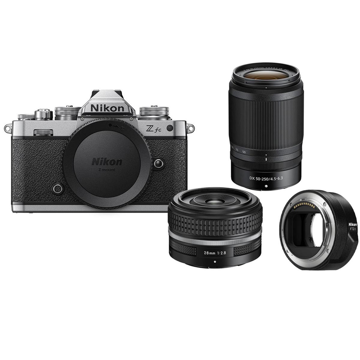 Included in this kit is a classically designed special edition NIKKOR Z 28mm f/2.8 (SE) lens. The ultra-compact, fast prime full frame lens is a 42mm equivalent on the Z fc. Both camera and lens design feature timeless Nikon appeal.