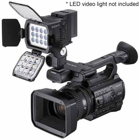 The PXW-Z150 takes advantage of Sony’s flexible Multi-Interface (MI) Shoe, which provides power, signal connections and coordinated on/off switching to compatible Sony accessories. For example, you can connect and control Sony wireless microphone systems such as the UWP-D11 or UWP-D12 or attach the HVL-LBPC light.